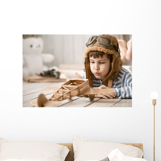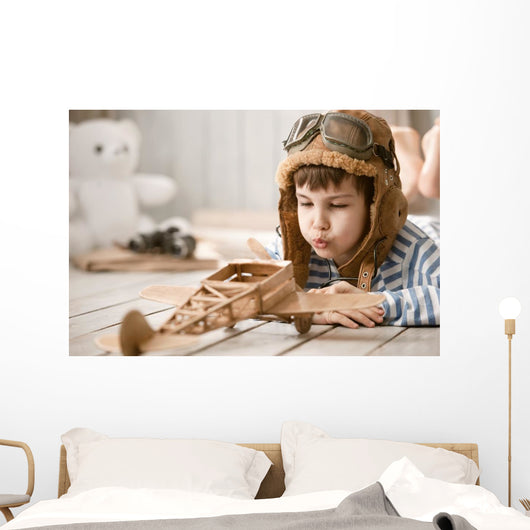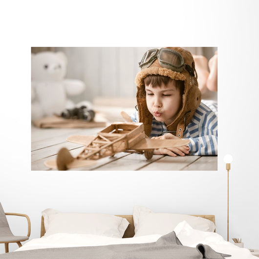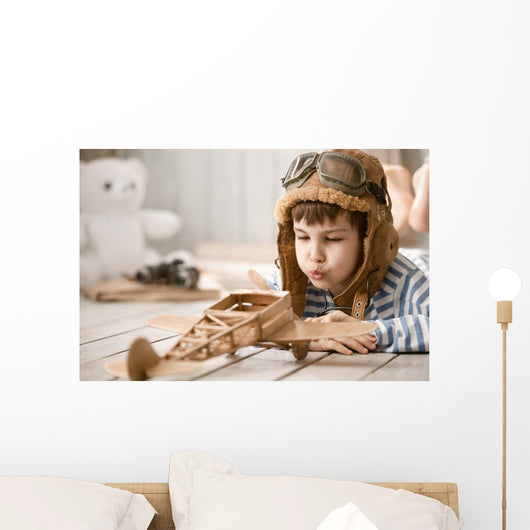 Portrait Young Boy with Wall Mural