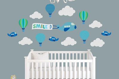 Blue Clouds Balloons Airplane Wall Decal Sticker Set Wall Decal