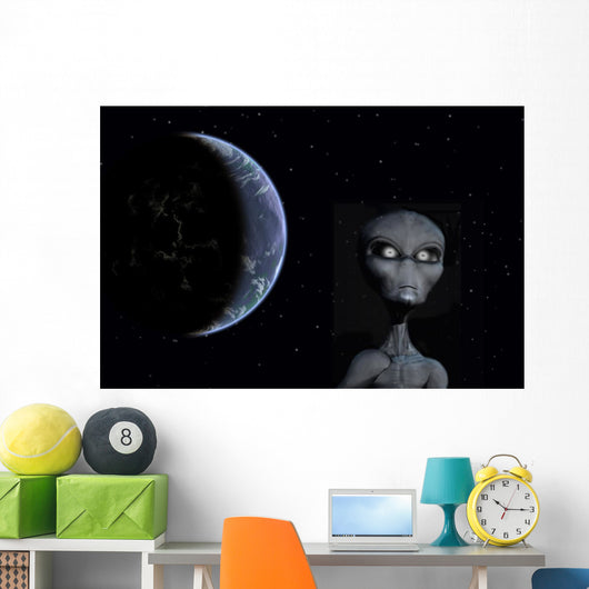 Grey Alien with Planet Wall Decal