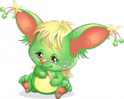 Cute Green Monster Cartoon Wall Decal