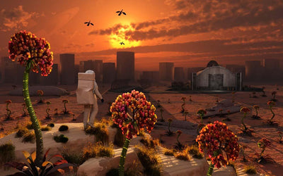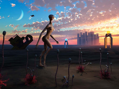 Sci-fi themed wall decals of aliens and ufos. Alien wall decals are an excellent addition to your science fiction theme room. Choose from illustrative and cartoon style alien wall stickers or computer generated adhesive mural prints of sci-fi scenes. Easy to install, peel and stick alien decorations.
