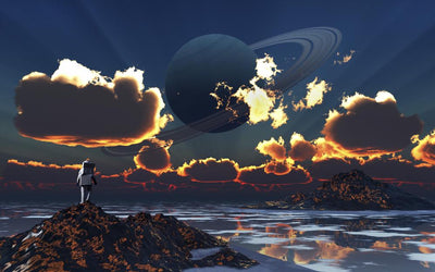 Astronaut Exploring Alien Moon and Planet Wall Decal