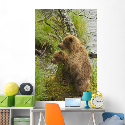 Brown Bear Cubs Standing Wall Mural