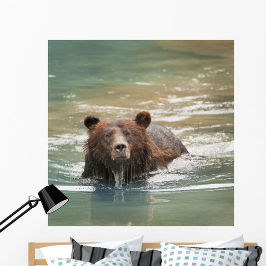 Grizzly Bear Swimming Wall Mural