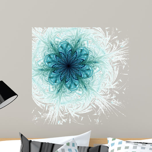 Blue Fractal Flower Pattern Wall Mural