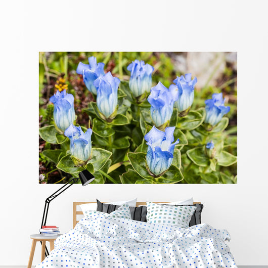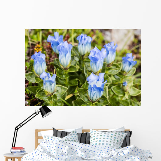 Macro Broadpetal Gentian Crow Wall Mural