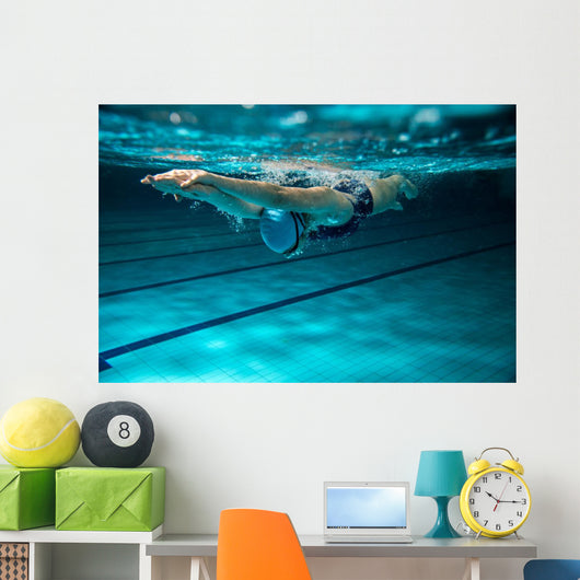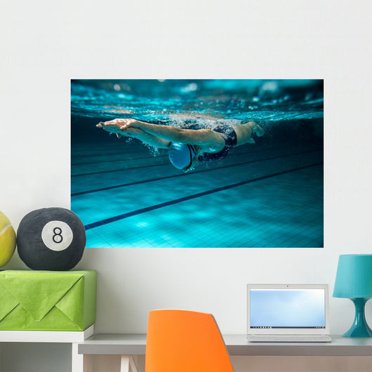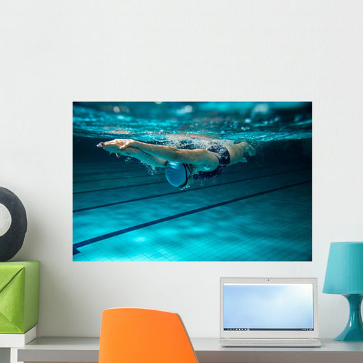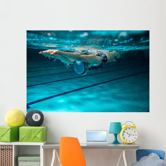 Female Swimmer At The Swimming Pool. Underwater Photo. Wall Decal