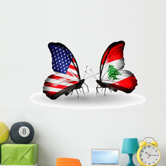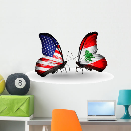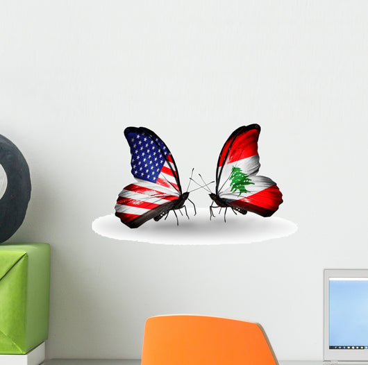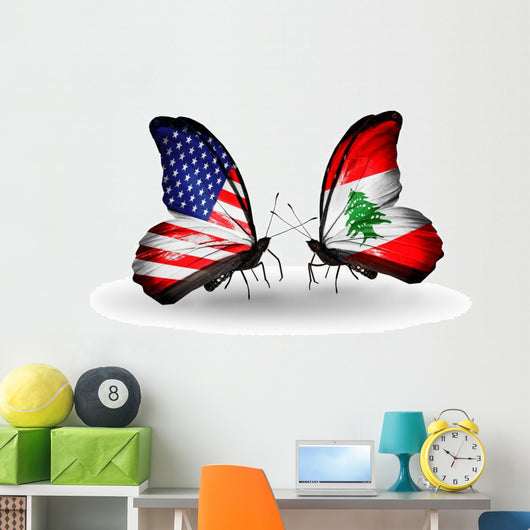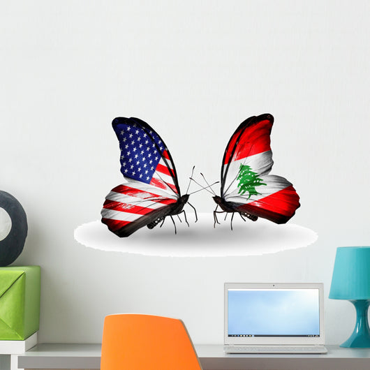 Two Butterflies with Flags Wall Decal