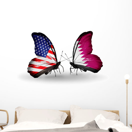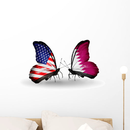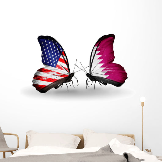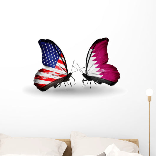 Two Butterflies with Flags Wall Decal
