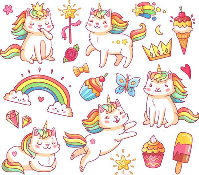 Magic Unicorn Cats Wall Decal Sticker Set