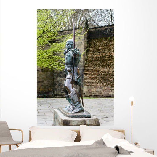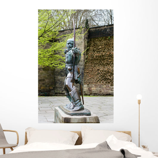 Robin Hood Statue near Wall Mural