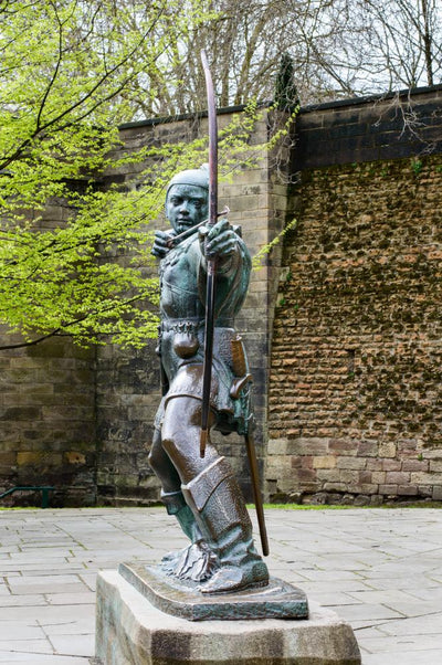 Robin Hood Statue near Wall Mural