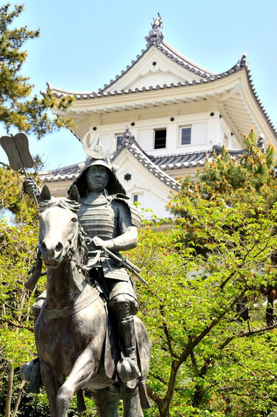 Samurai Statue and Castle Wall Decal