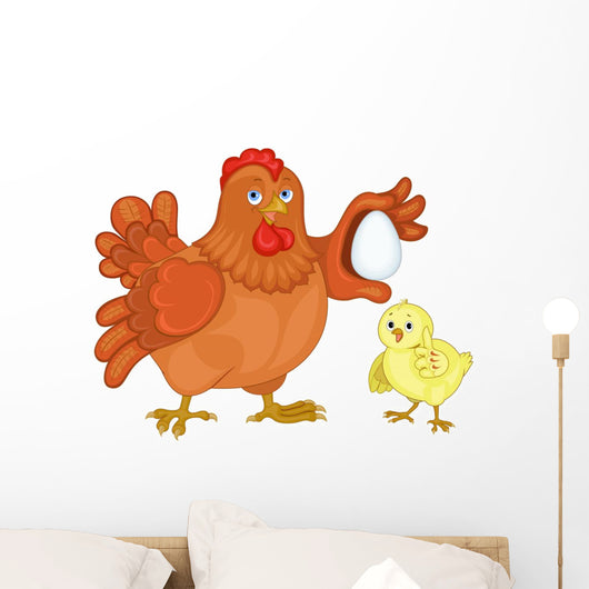 Hen and Chicken Illustration Wall Decal