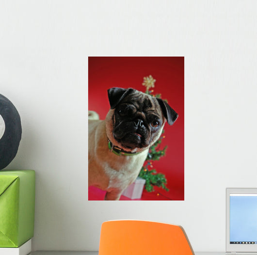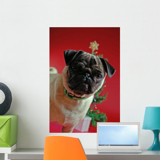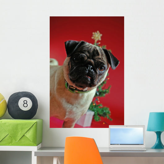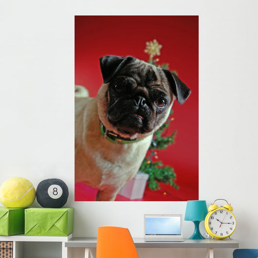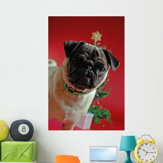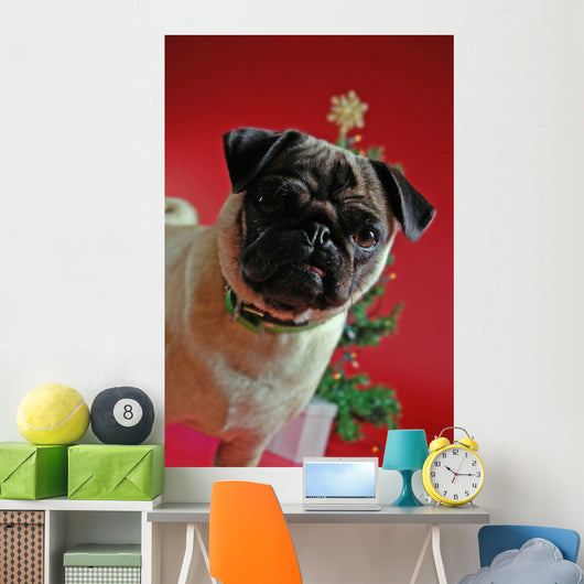 Pug Front Christmas Tree Wall Mural