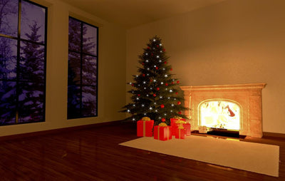 Christmas Tree Fireplace Upclose Wall Mural