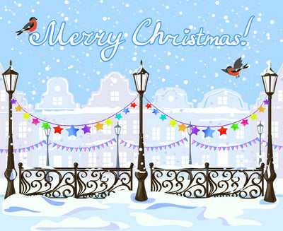 Christmas Vintage Winter City With Decorations Wall Decal