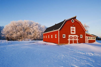 Red Barn Winter near Wall Mural