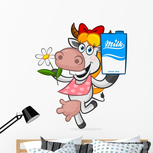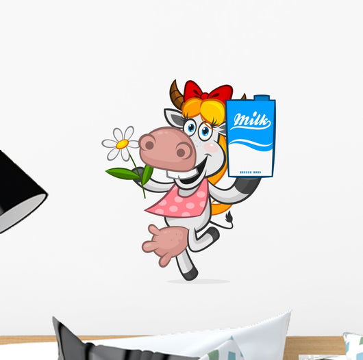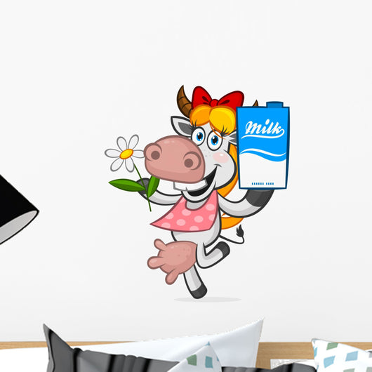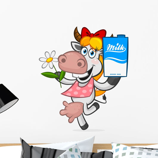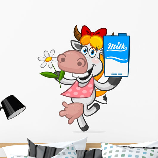 Cheerful Cow Holding Carton Wall Decal