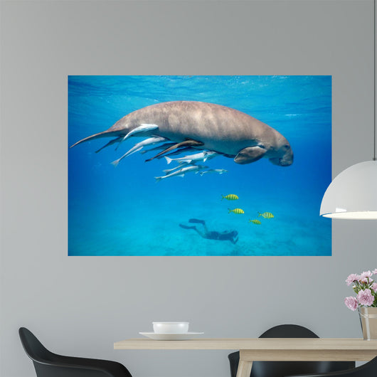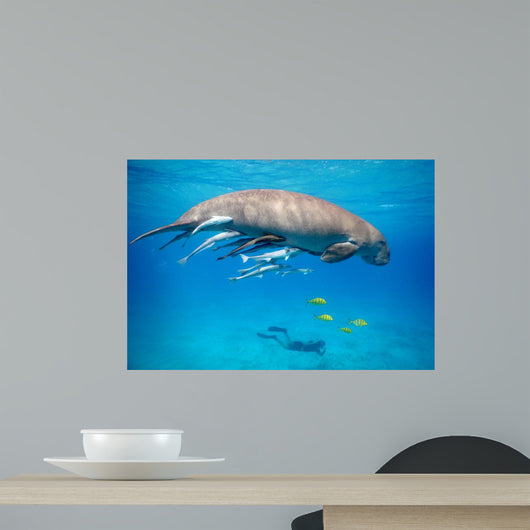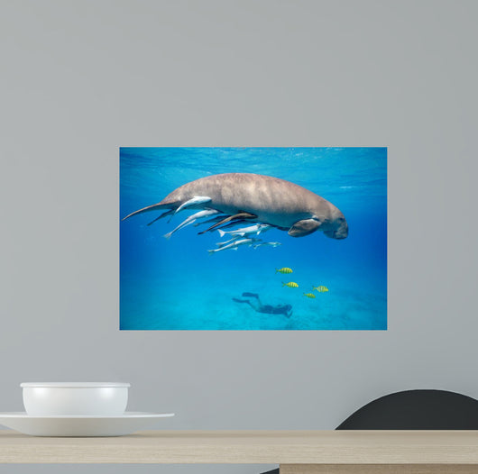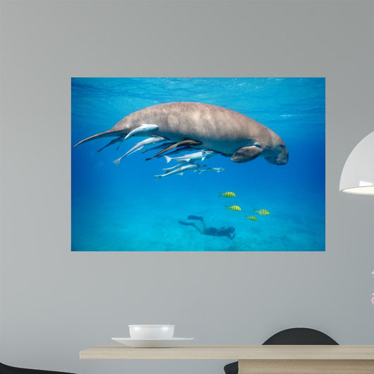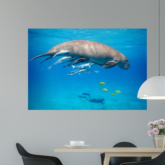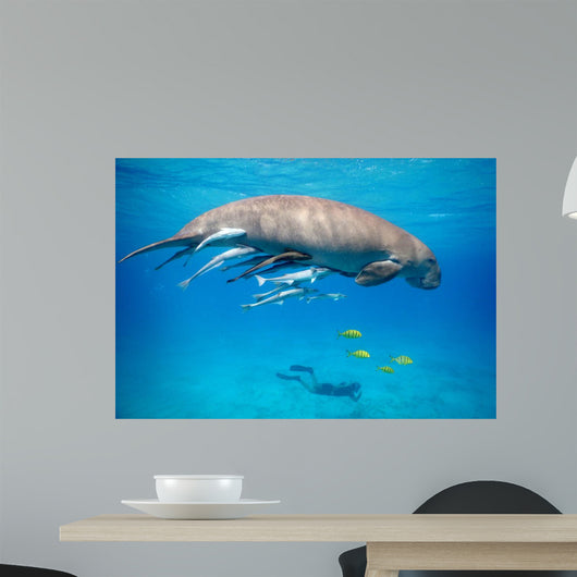 Snorkeling with Dugong Red Wall Decal