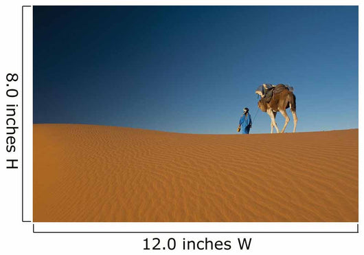 • Berber leading camel across sand dune near Merzouga in Sahara Desert Wall Mural