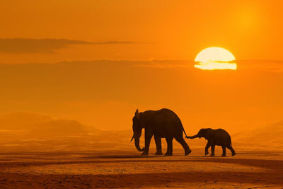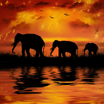 Elephants Beautiful Sunset Wall Mural