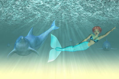 Mermaid Girl with Dolphins Wall Mural
