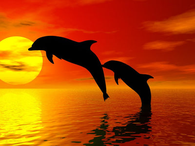 Dolphins Jumping at Sunset Wall Decal