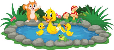 Cartoon Ducks Pond Wall Decal