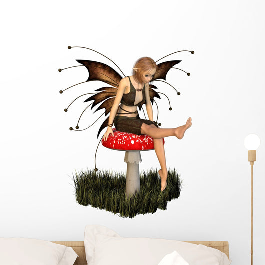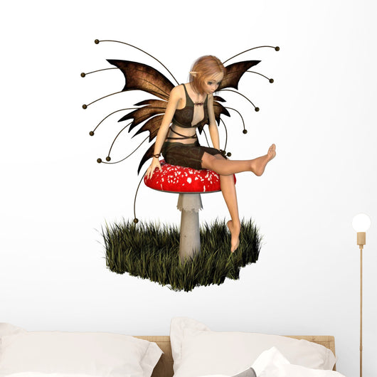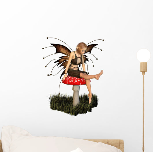 Pretty Fairy Sitting on a Toadstool Wall Decal