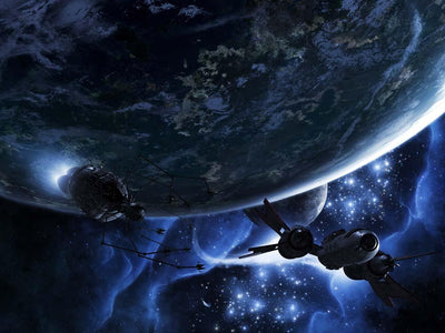 Starships Blast past Blue Wall Decal