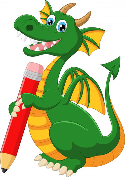Cartoon Green Dragon Holding Wall Decal