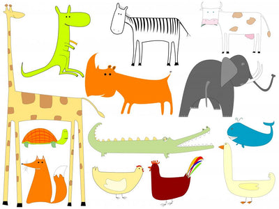 Cartoon Hand Drawn Animals Wall Stickers