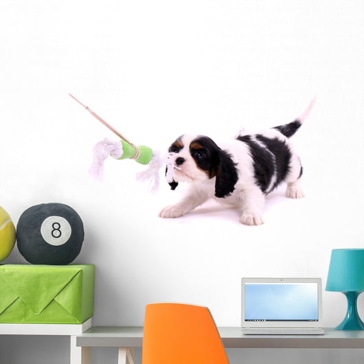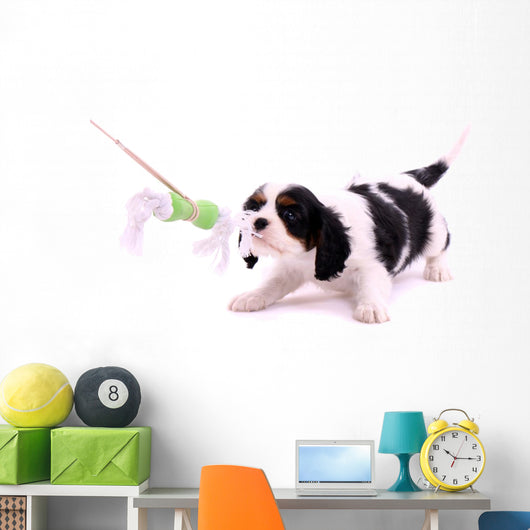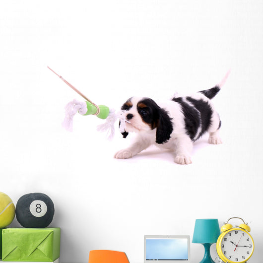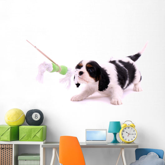 Cavalier Puppy Pulls Toys Wall Decal