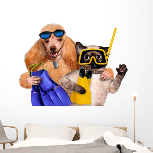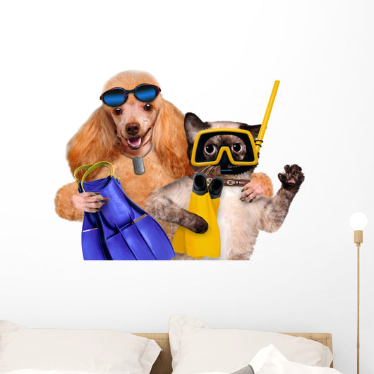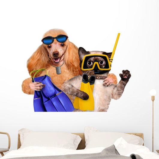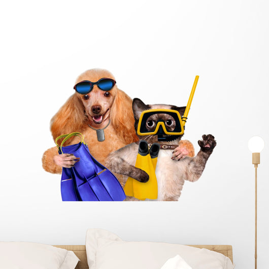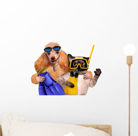 Dog with Cat Diver Wall Decal