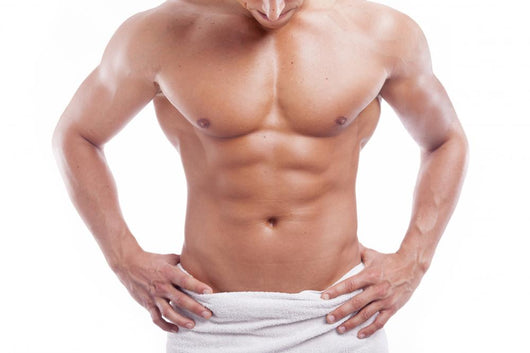 • Muscular man in towel, isolated on white