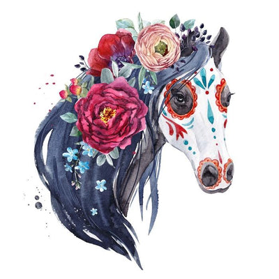 Watercolor Horse with Flowers Portrait Wall Decal