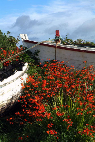 Flowers Wooden Boat Roundstone Wall Mural