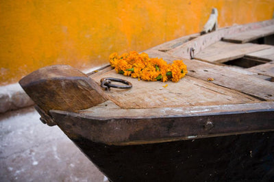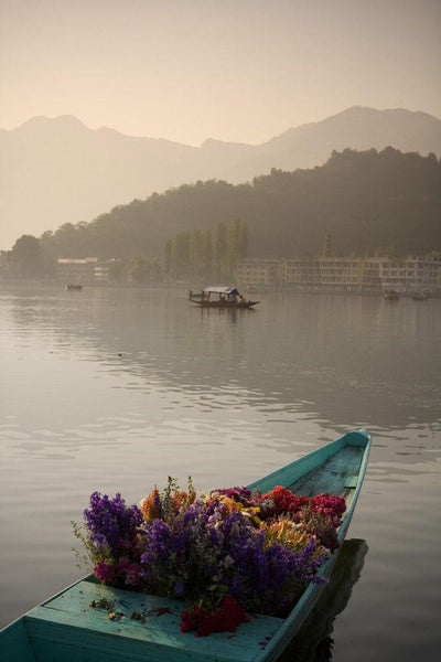 Flowers Top Wooden Canoe Wall Mural