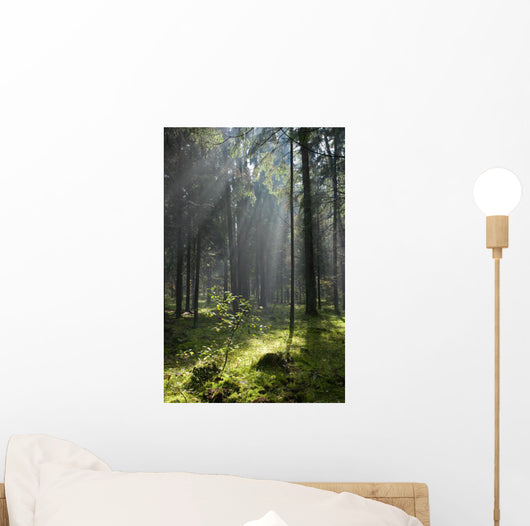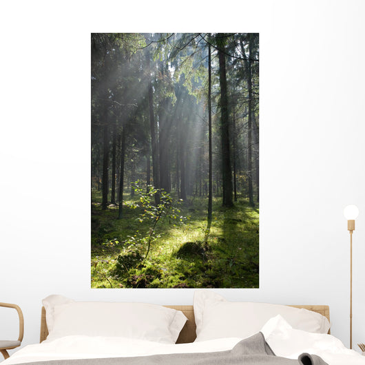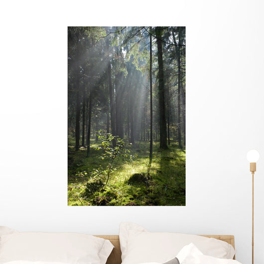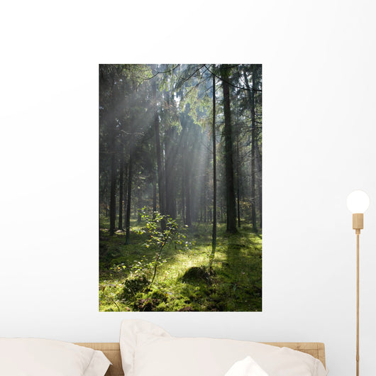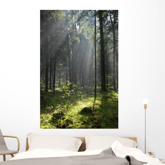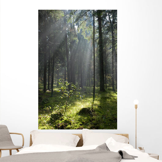 Misty Coniferous Forest Landscape Wall Mural