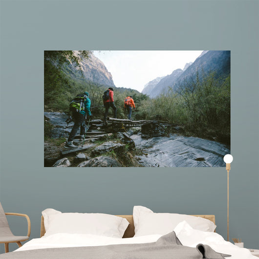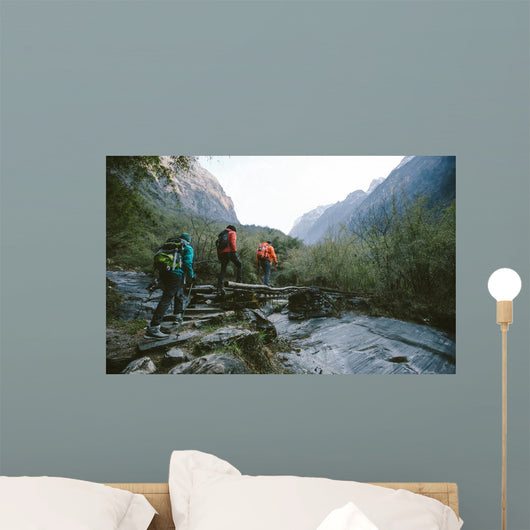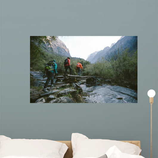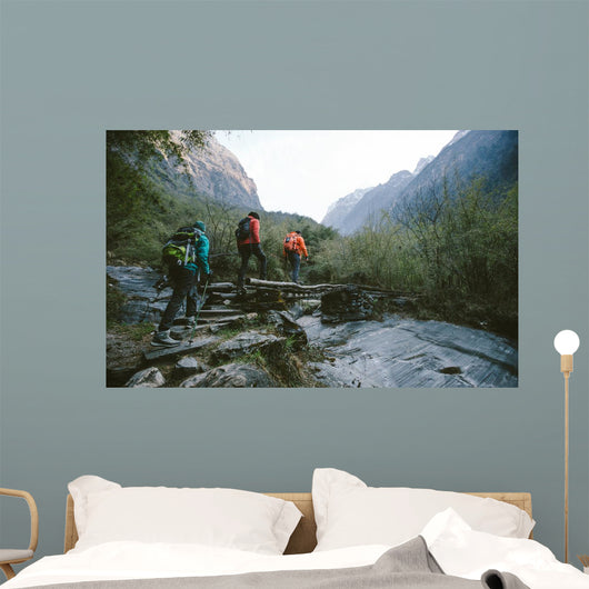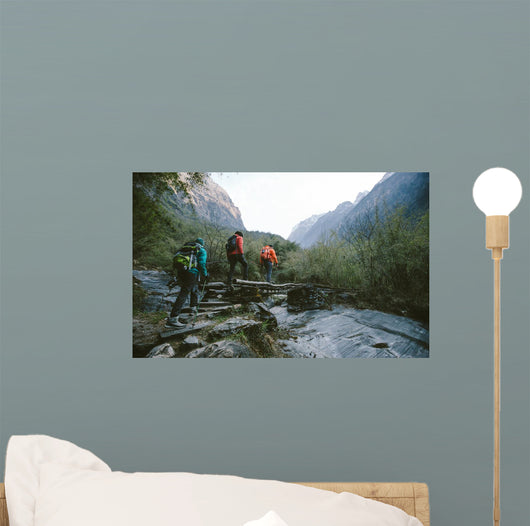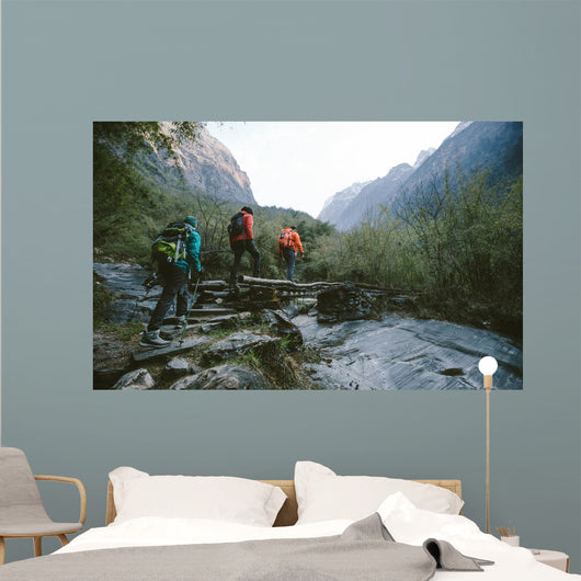Hikers Trekking across Himalayas Wall Mural