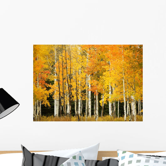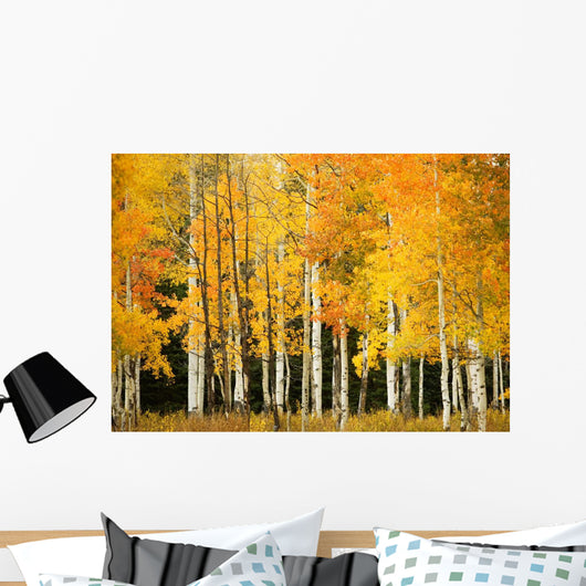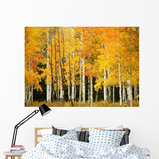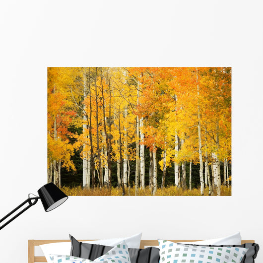 Line Fall-colored Aspen Trees Wall Mural