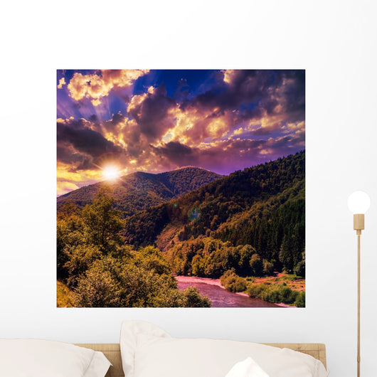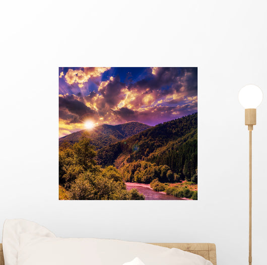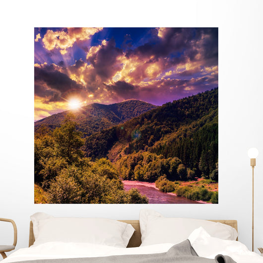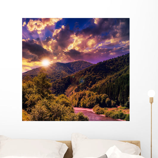 Mountain River near Forest Wall Mural
