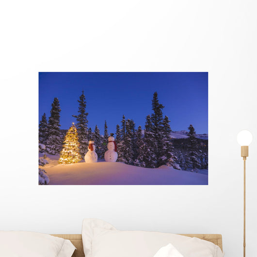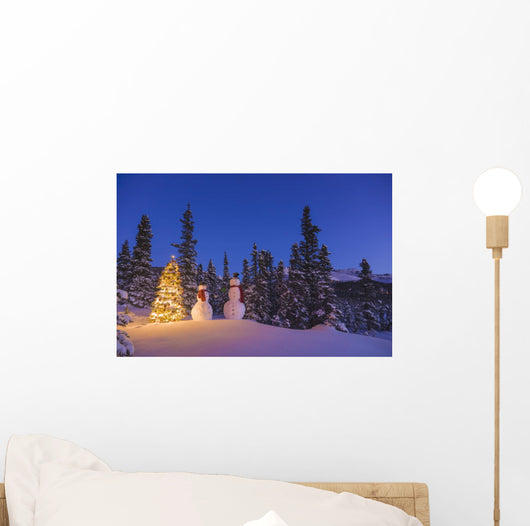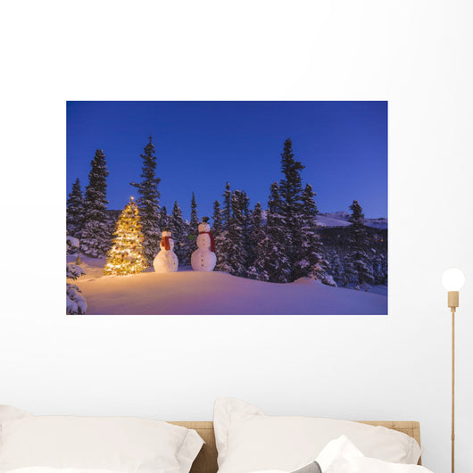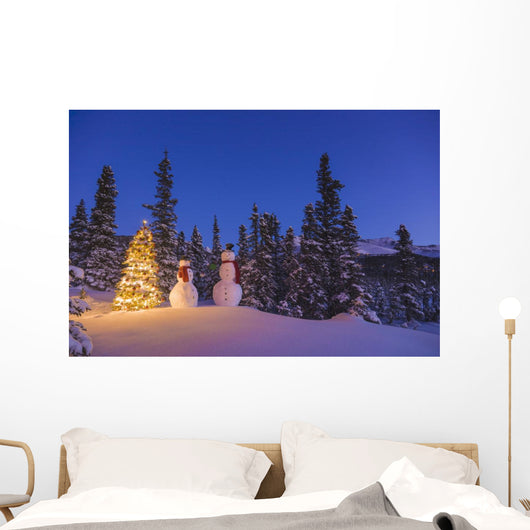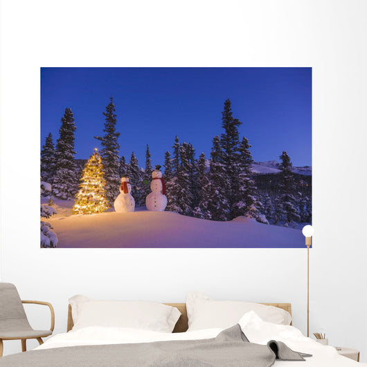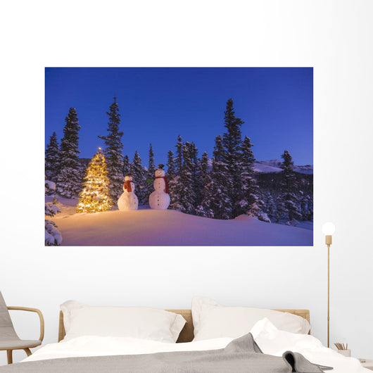 Two Snowmen Exchanging Gifts Wall Mural