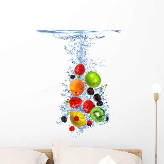 Fresh Fruits Dropped into Wall Mural