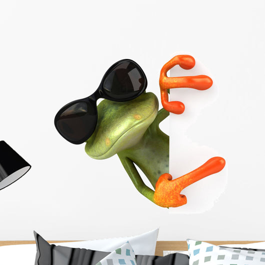 Cool CG Tree Frog Pointing Around Corner Wall Decal