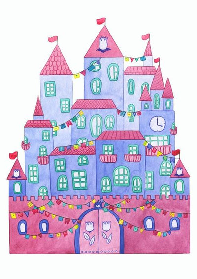 Beautiful Blue Cartoon Castle Wall Decal