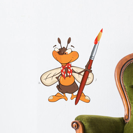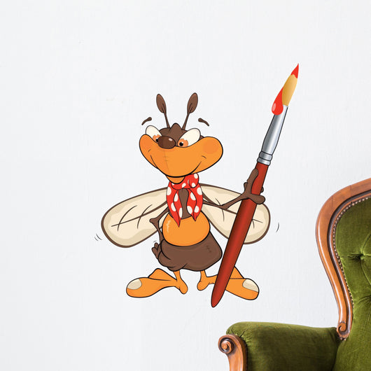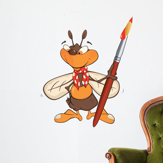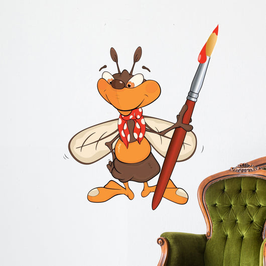 Bee Artist Cartoon Wall Decal