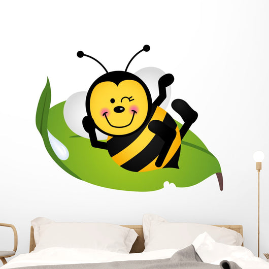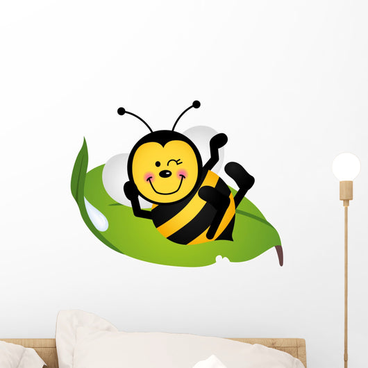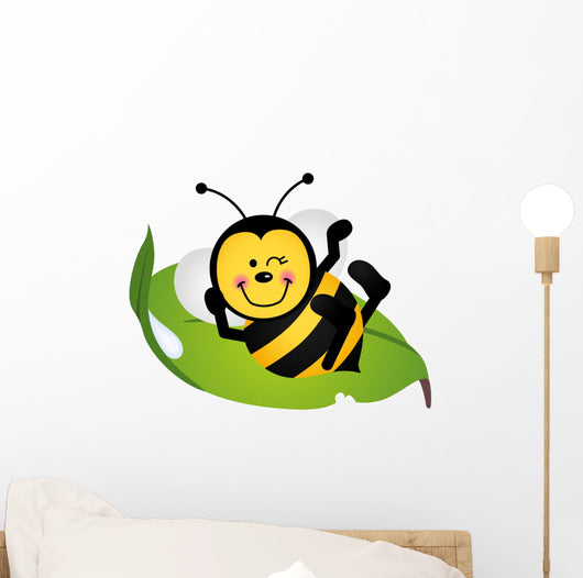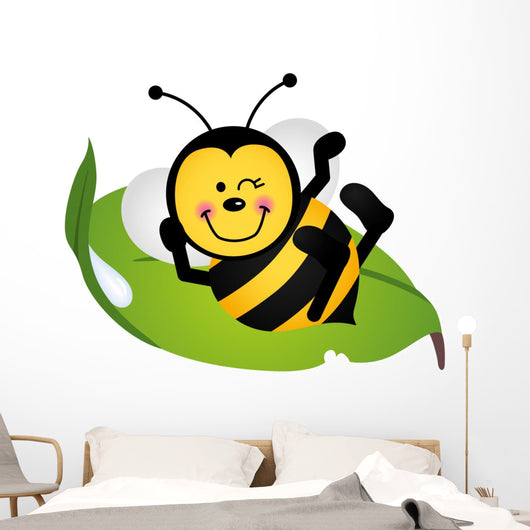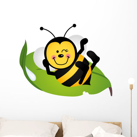 Cute Bee Sitting Green Wall Decal