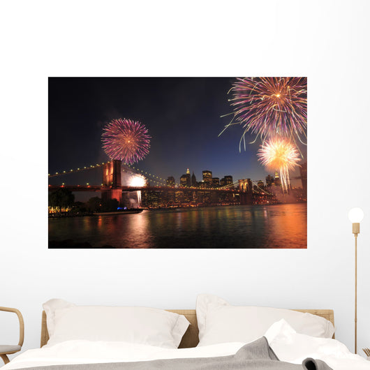 Brooklyn Bridge and Fireworks Wall Decal